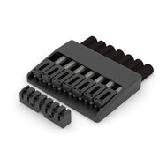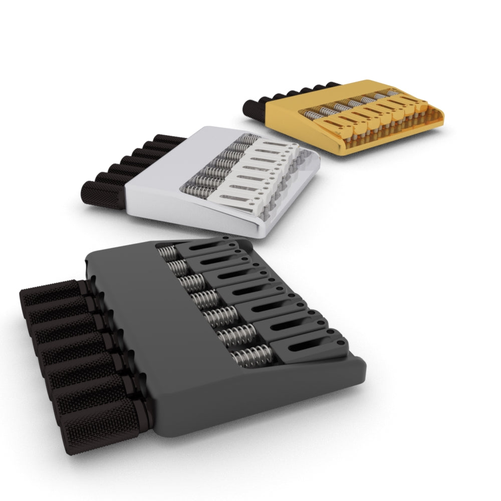 Make the most of your headless build with the Hipshot Headless Guitar System. The precision machined aluminum body is light and rugged. Our proprietary split level design conceals the tuning assembly below the body for a sleek and compact look while providing additional down pressure at the saddle. Plus, the knurled brass tuning knobs are so satisfying to turn you’ll almost wish this bridge went out of tune more often!