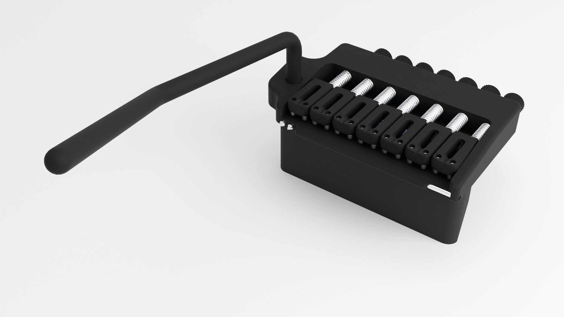 The same super smooth pivot pin design found on our US Contour and Flat Plate Tremolos is now available for your next headless build! The Headless Tremolo Bridge also features our proprietary split level design which offers the benefits of concealing the tuning assembly below the bridge plate, providing you with accurate and satisfying tuning action, and adding more down pressure to the saddle for improved tone and sustain.